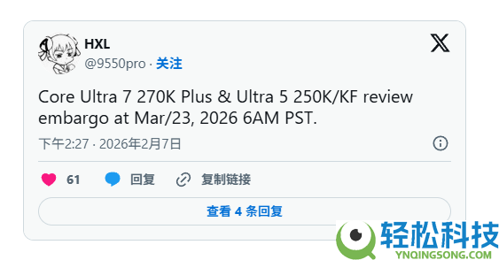 根据已经掌握的消息,Intel此次调整主要有两方面原因。一是产品线向更高性价比的方向转变,主推Ultra 7 270K Plus、Ultra 5 250K/KF三款型号。知名爆料人@9950pro称,上述三款处理器的评测将于3月23日正式解禁,但并未提到290K Plus,也从侧面证实了其取消的传闻。