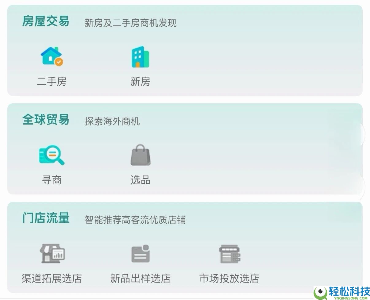 数据罗盘小程序同时还包含三大营销工具类数据,分别是:房屋交易数据、全球贸易数据、门店流量数据。这些数据工具可以帮助各行各业在相关领域实战赋能。